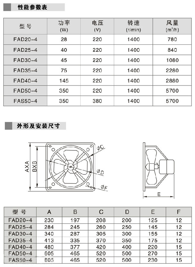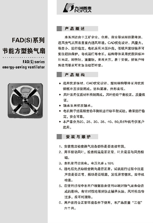 九洲普惠FAD节能方型换气扇400型16寸(FAD40-4)
